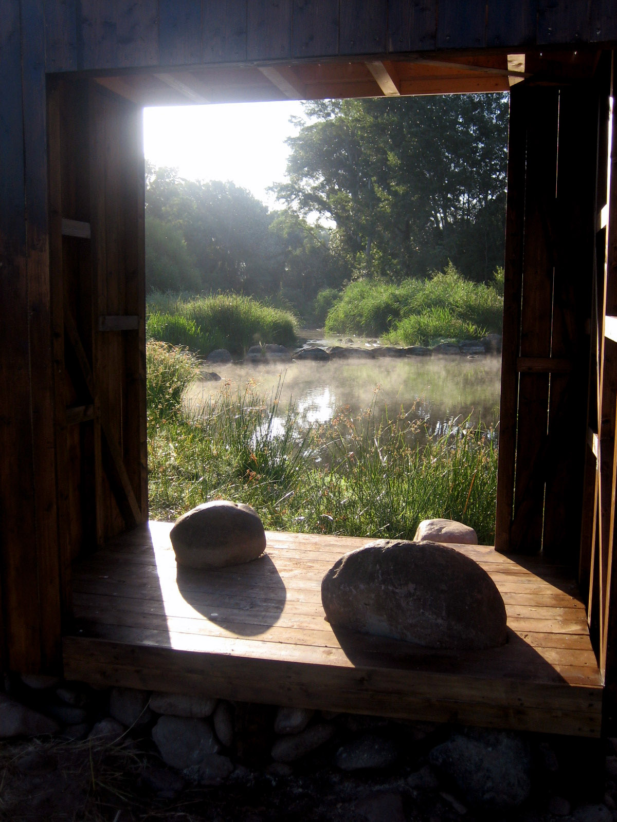 The fishing hut became a tranquil place, cantilevering over the river offering a close contact with the river space, its light, scents, and acoustics.
